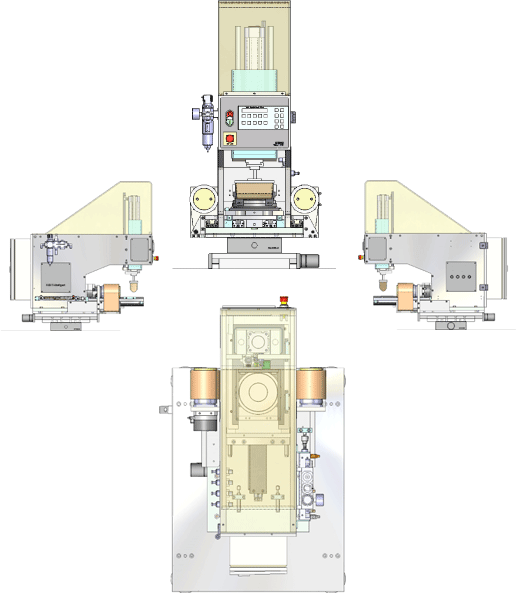 Somit können die Maschinen sehr flexibel an jeder beliebigen Stelle auch über großen Druckteilen eingesetzt werden.